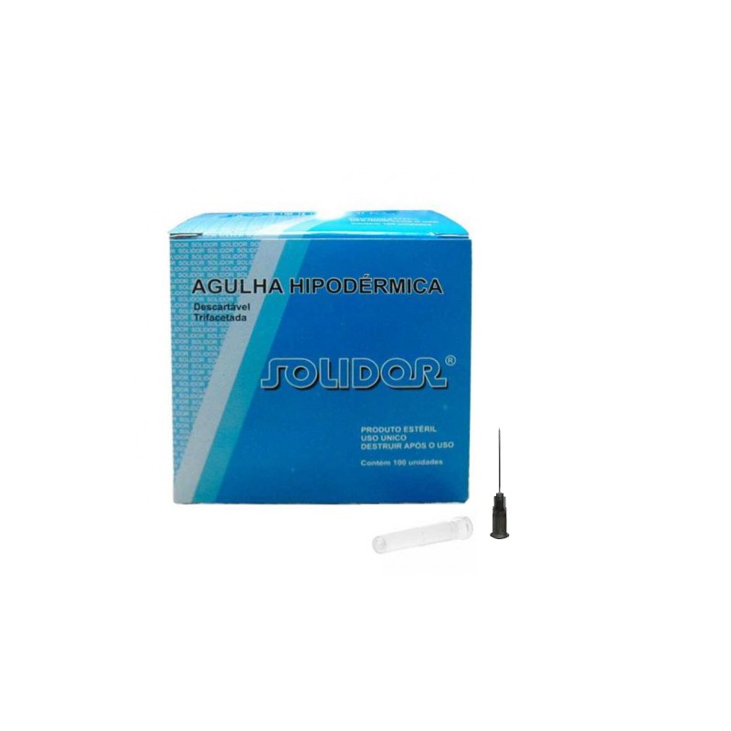AGULHA DESCARTÁVEL 25X0,7MM C/100 UNIDADES – SOLIDOR – 2114