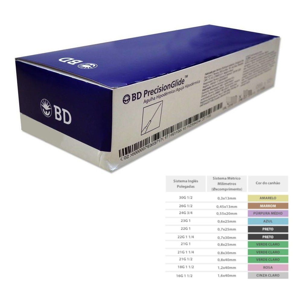 AGULHA DESCARTÁVEL 25X0,6MM C/100 UNIDADES – BD – 1447