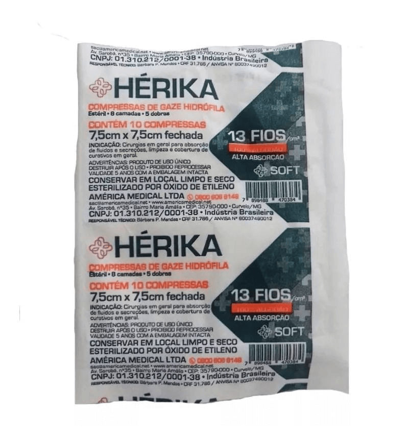 COMPRESSA GAZE ESTÉRIL 7,5CM 13 FIOS 10X40 UNIDADES – HERIKA – 2093