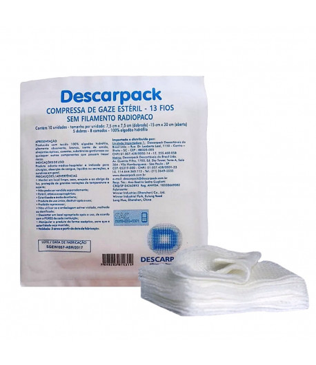 COMPRESSA GAZE ESTÉRIL 7,5CM 13 FIOS 10X70 UNIDADES – DESCARPACK – 0945