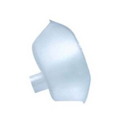 Máscara para inalação, confeccionada em plástico transparente, embalada individualmente em saco plástico.